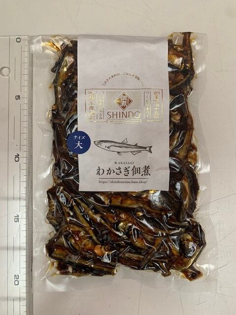 青森中三様にて販売して頂いておりました、弊社わかさぎ佃煮と同じもので、量は倍になります。賞味期限は約3ヶ月 冷凍保管も可能です。日本郵便の、レターパックライト便(郵便ポスト投函)¥430税込 にて発送、1~2パック対応です。魚体サイズが3種類あり、まぜての注文可能です。