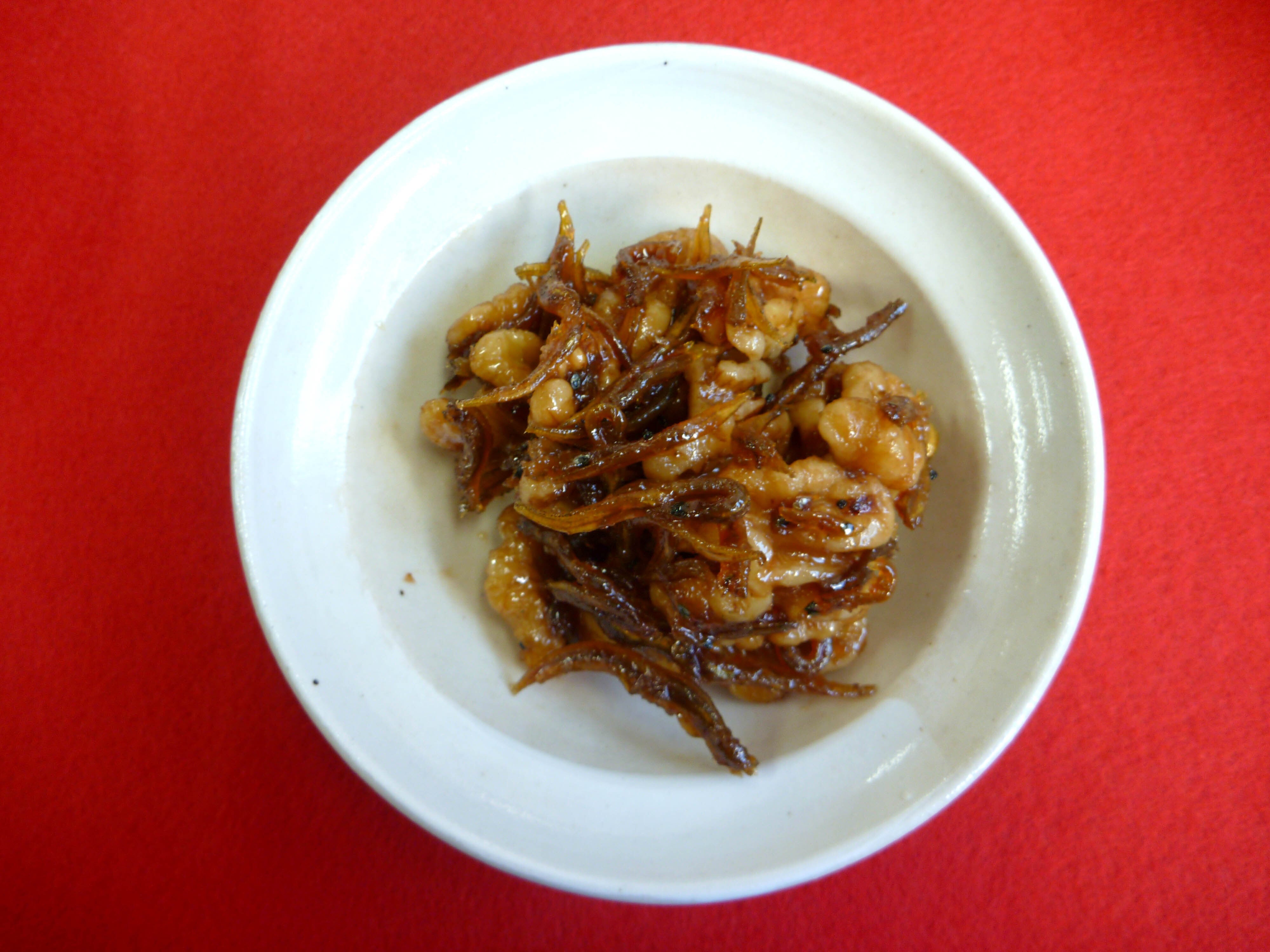原材料名:小女子(青森県産)、くるみ(アメリカ産)しょうゆ、砂糖、水あめ(一部に小麦、大豆を含む)